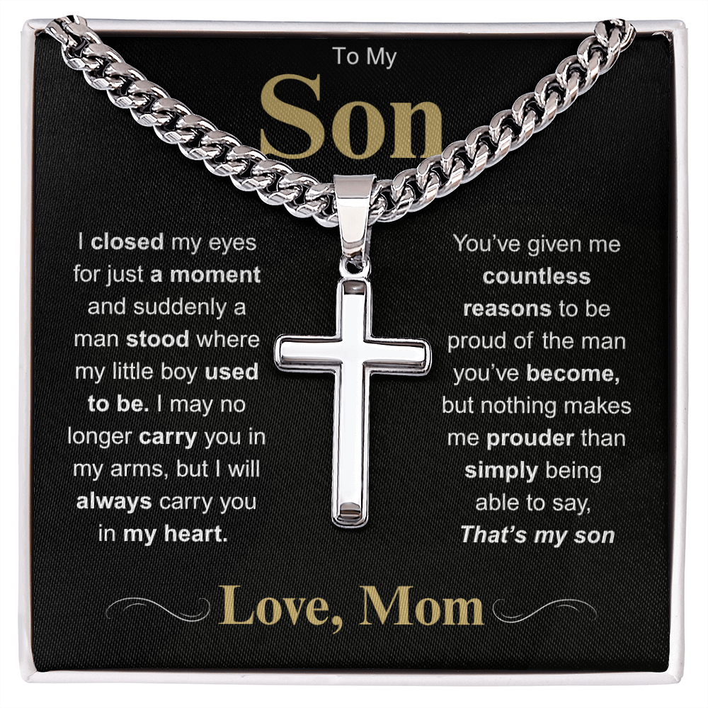 To My Son-I Closed My Eyes For Just A Moment-Cuban Cross Necklace.
