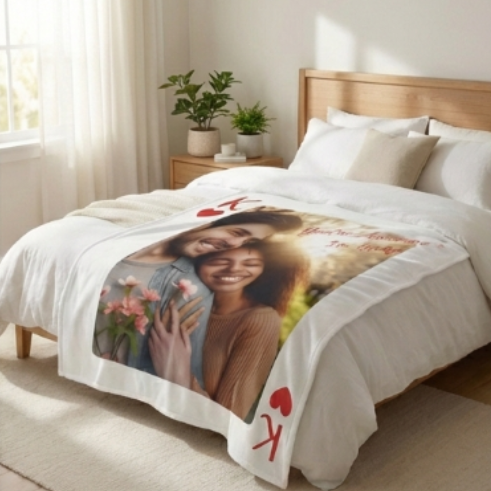 Anyone can buy a blanket. But only you can give them a moment, a memory, and a feeling they’ll never forget. This King of Hearts Personalized Photo Blanket transforms your favorite photo into a romantic keepsake they’ll cherish for years.