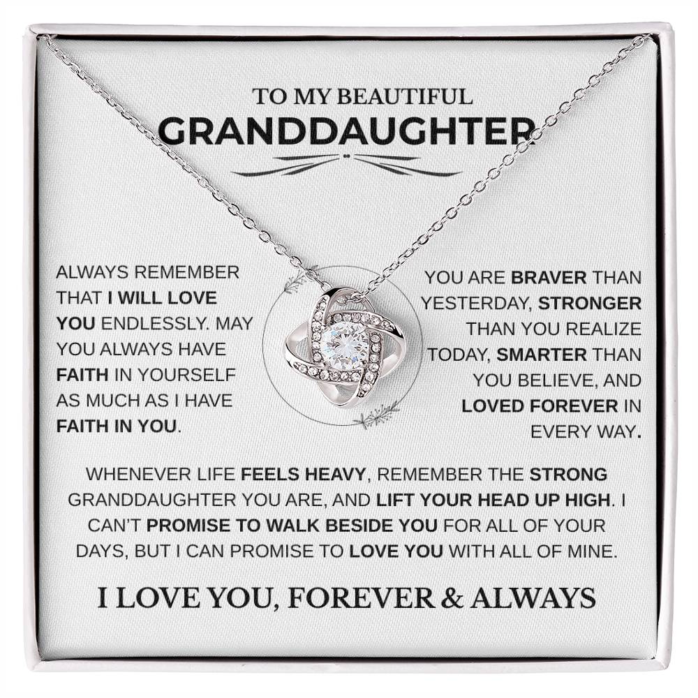 To My Beautiful Granddaughter "I Promise To Walk Beside You" Love Knot Necklace